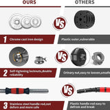 Each dumbbell handle is solid steel with upgraded curve-shaped rubber coating handles give you great control over your weights, it can give you a better grip so you can improve your coordination and avoid any injuries or accidents. This simply designed dumbbell/barbell can be used to strength train and to build your muscles in order to avoid muscle atrophy and keep healthy